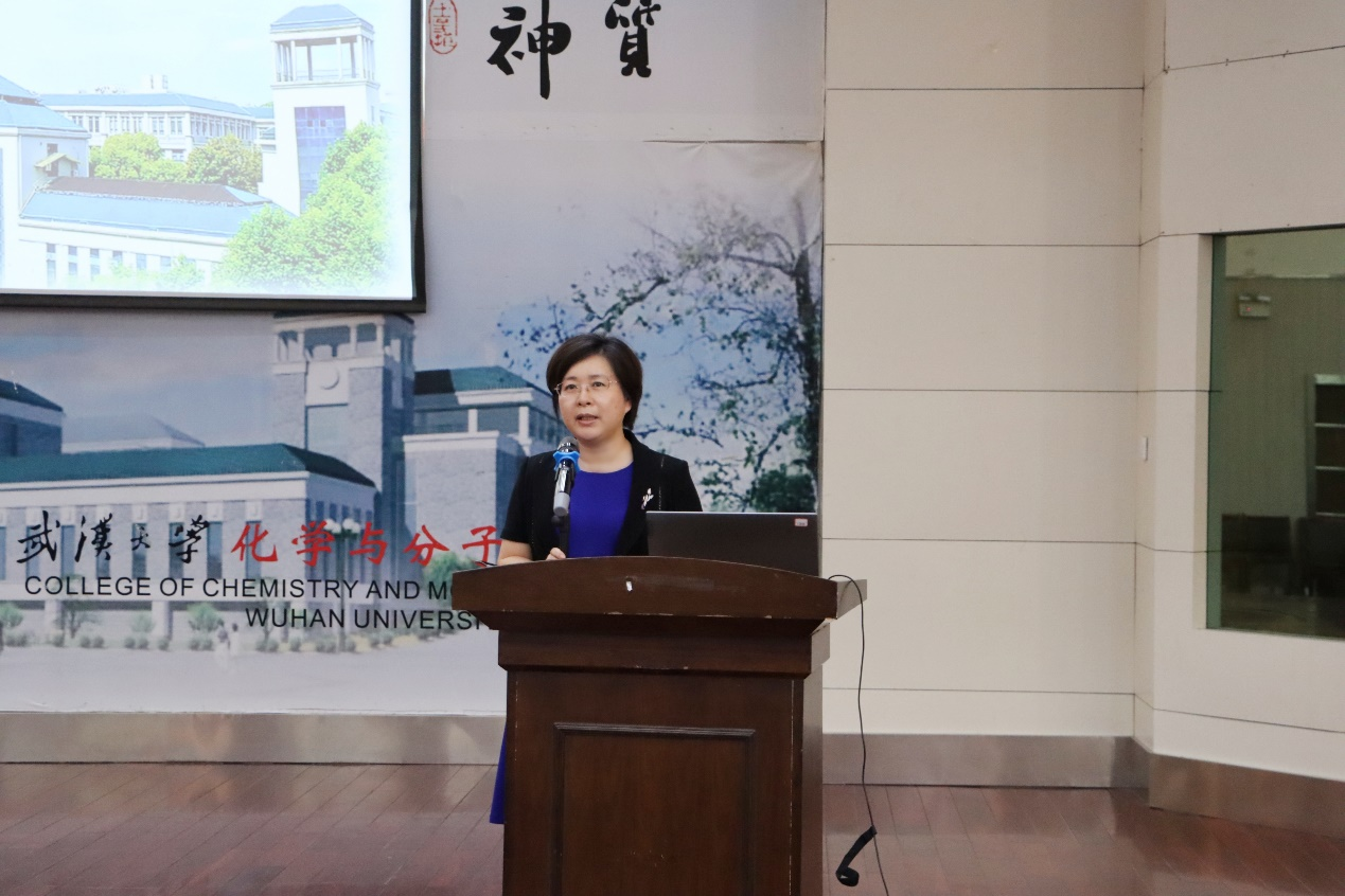 王丽萍书记总结讲话。她对进一步加强学院意识形态工作和安全稳定等工作面提出了具体要求。她要求学院党委行政领导班子和教 职员工进一步强化政治责任,加强统筹协调,共同维护好学院安全稳定,凝聚以贯彻党的二十大精神引领新征程的奋斗共识。她指出,本科招生工作需要全院老师积极行动起来,平日加强走进高中做专业介绍、开展兴趣活动的力度,不断提升学校、学院整体形象和学生对于化学专业的认知度和兴趣度。她强调,学院发展要紧密结合国家“四个面向”战略需求和大力发展化学基础学科要求,有效推动化学学科一流学科建设和学院高质量发展,推动学院各项事业不断迈上新台阶。她号召全院师生要锐意进取、积极作为,以推动学院改革发展的实际行动喜迎党的二十大的胜利召开!
