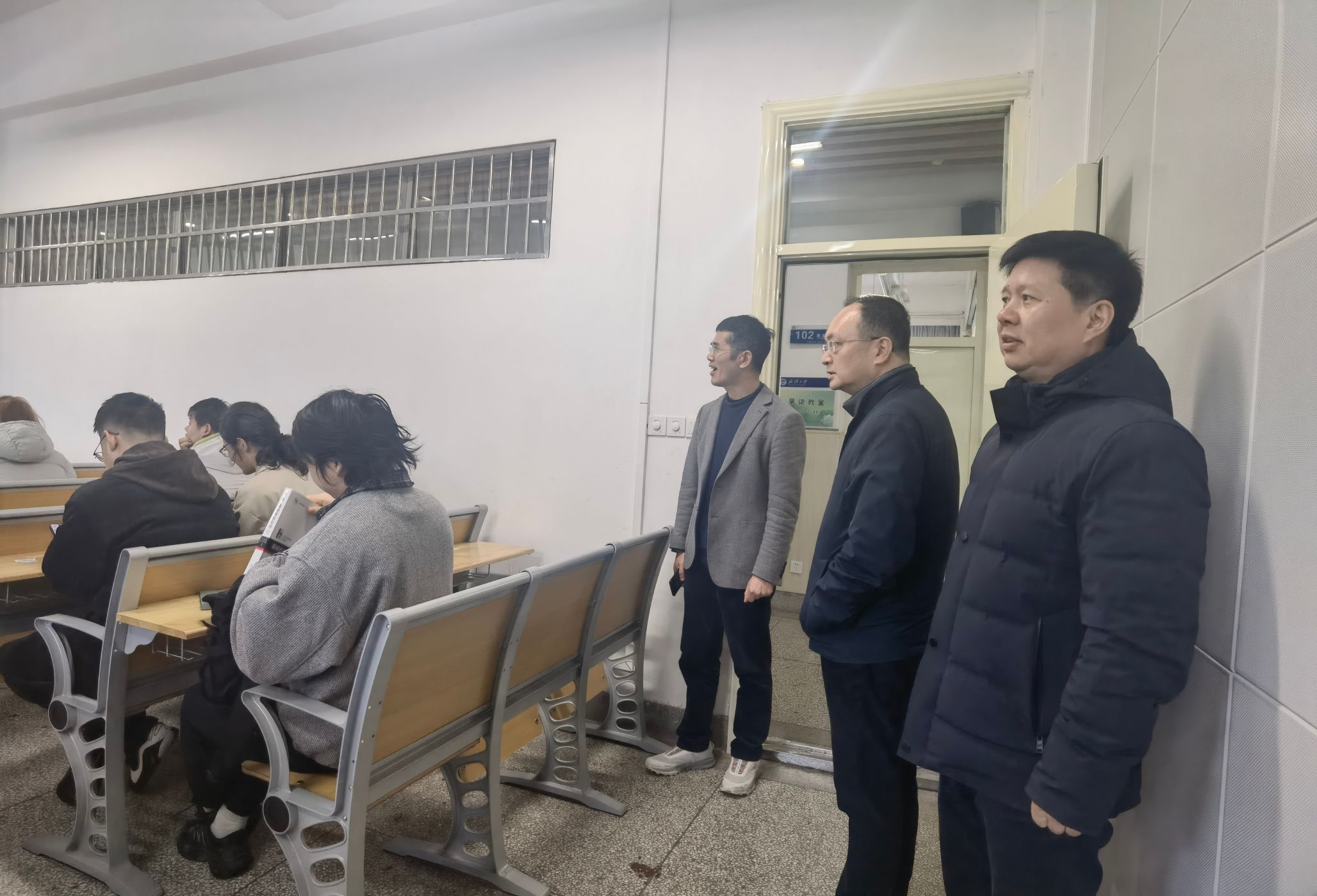 党委书记黄卫华、院长庄林深入本科教学一线,开展新学期课堂教学巡视工作,全面检查教学秩序、教师授课及学生到课情况,同行的还有学院党委副书记吕晶、副院长周金平、教学督导蒋风雷以及教学秘书、辅导员。